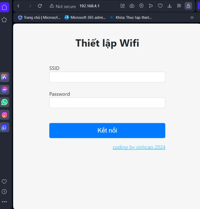 Đầu tiên, chúng ta nói về nguyên lý. Code mình viết sẽ có 2 chế độ là AP Mode và Wifi Station, khi bạn vào code bạn sẽ thấy một hàm để phát Wifi với tên Setup Wifi và Password 12345678. Bạn có thể nạp code vào và kết nối Wifi này, khi đó bạn truy cập IP: 192.168.4.1 để vào Webserver. Webserver này là mã HTML do chính ESP8266 phát ra, lúc này sẽ có giao diện như sau: