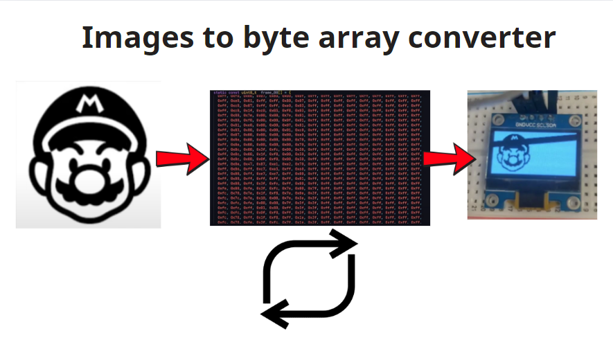 image2cpp là một công cụ đơn giản để chuyển đổi hình ảnh thành mảng byte (hoặc mảng trở lại thành hình ảnh) để sử dụng với màn hình (đơn sắc) như OLED trên Arduino hoặc Raspberry Pi của bạn.